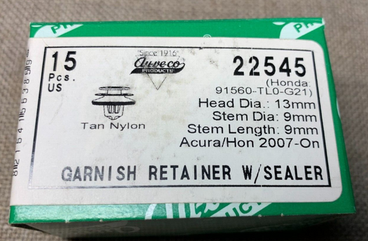 15 Auveco 22544 Garnish Retainer W/Sealer, for Hondo 2013-On