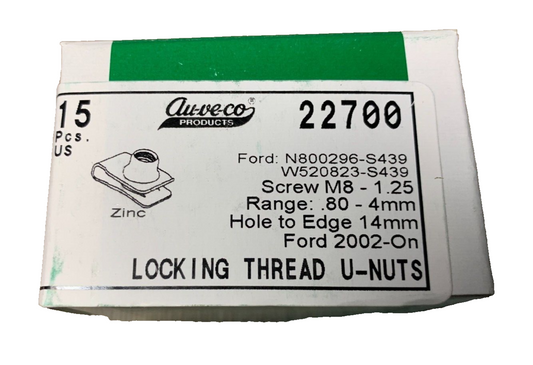 15 Auveco 22700 Metric Extruded U-Nut, M8-1.25 Locking Thread, for