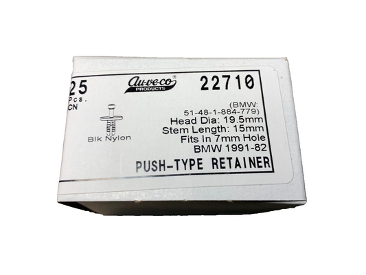 25 Auveco 22710 Push-Type Retainer, for 7 mm Hole,19.5mm Head, 51-48-1-884-779