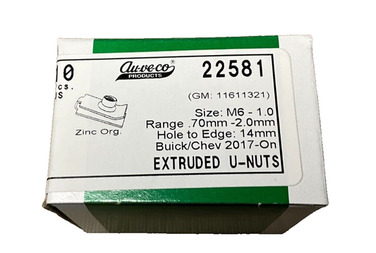 10 Auveco 22581 Extruded U-Nut, M6-1.0 Thread, for GM 11611321