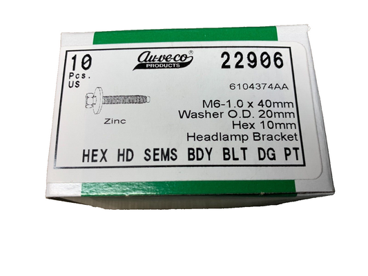 10 Auveco 22906 Hex Head SEMS Body Bolt Zinc M6-1.0 x 40mm