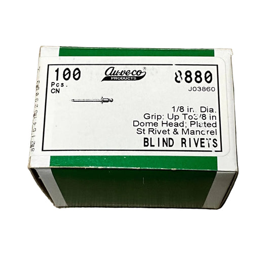 Auveco 8938 Aluminum Blind Rivets, 3/16" Shank x 11/16", Dome 3/8" Flange 100 Pc