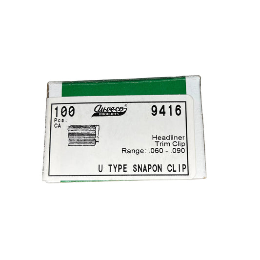 UNIVERSAL U Type Snap-On Clip, 0.06" to 0.09" Panel Range Auveco 9416 (Qty: 100)