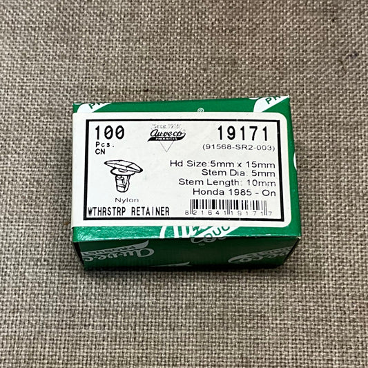 100 Weatherstrip Retainers Auveco 19171 Honda Odyssey: 91568-SR2-003; 1985-On