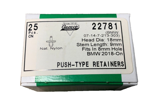 25 Auveco 22781 Fits BMW 07-14-7-213-303 Rocker Molding Push-Type Retainer