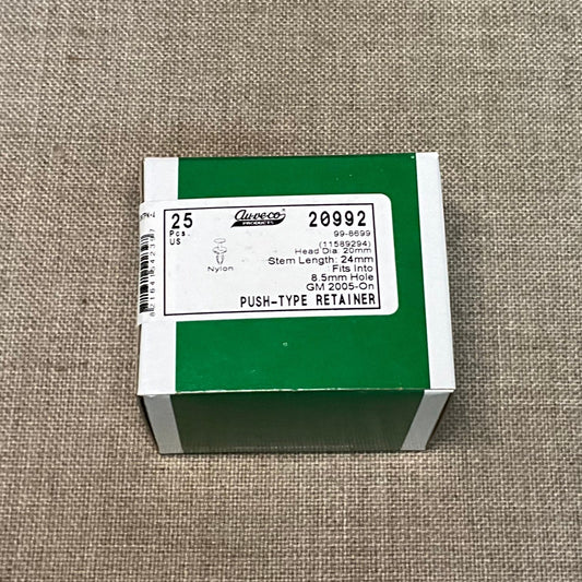 25 Auveco 20992 Push-Type Retainer, 20mm Head, 8.5mm Hole, 24mm Stem, for GMM