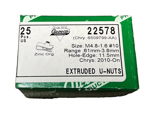 25 Auveco 22578 Extruded U-Nut, M4.8-1.6 Locking Thread, for Chrysler 6509799-AA