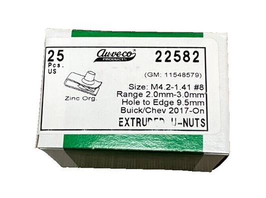 25 Auveco 22583 Extruded U-Nut, M4.2-1.41 Screw Size for GM 11548580