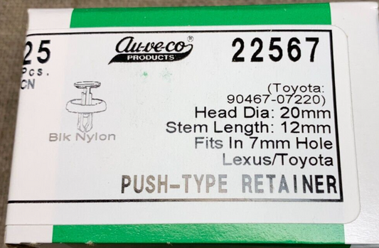 25 Auveco 22567 Push-Type Retainer, 20mm Head, for Toyota & Lexus 90467-07220