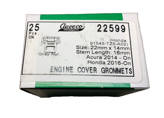 25 Auveco 22599 Engine Cover Grommet, Gray, Nylon, for Honnda 91548-TZ5-A02