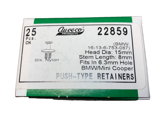 25 Auveco 22859 Push-Type Retainer, for BMWW Min Coop