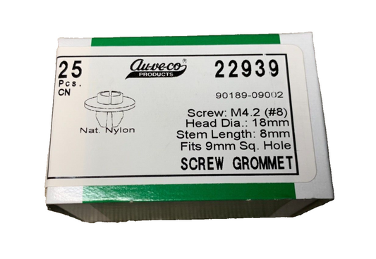 25 Auveco 22939 #8 (M4.2) Screw Grommet, Nylon, 16mm Head Dia, Toyo 90189-09002