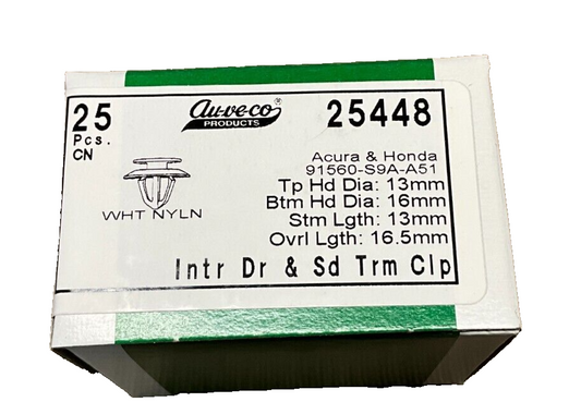 25 Belt Molding Clips Honda Auveco 25255 OEM : 91503-TLY-H01