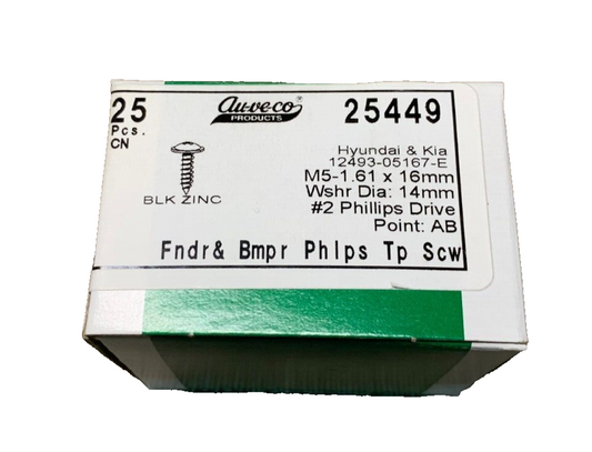 25 Auveco 25449 FENDER & BUMPER #2 PHILLIPS TRUSS WASHER HEAD TAP SCREW