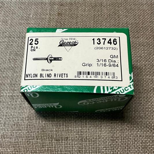 25 Black Nylon Blind Rivets Auveco 13746 For Auto GM: 20612732 and Universal
