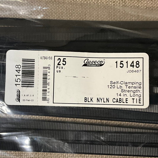 25 Cable Ties Auveco 15148 Self Clamping Cable and Harness Straps Universal