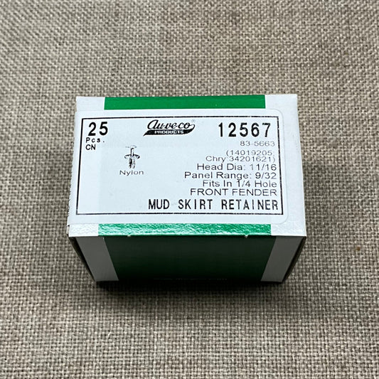 25 Front Fender Mud Skirt Retainer Auveco 12567 GM: 14019205 Chry: 34201621