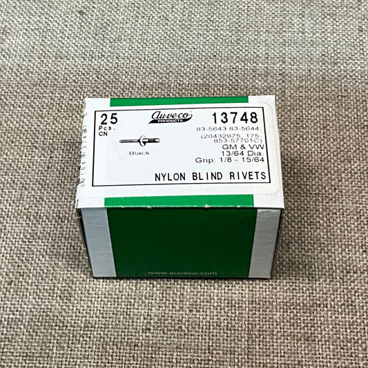 25 Nylon Blind Rivets Auveco 13748 For GM : 20432975 & VW : 175-853-57701C