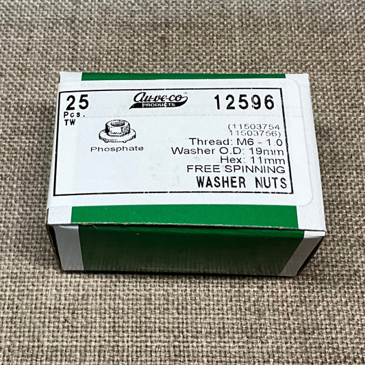 25 Pc Auveco 12596 Free Spinning Washer Nut M6-1.0 6mm O.D. 19 mm Hex 11 mm