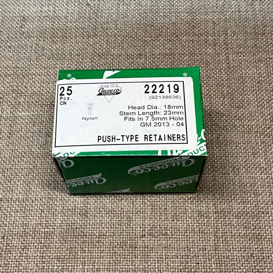 25 Push Type Retainers Auveco 22219 GM OEM : 92138636 From Year 2013 - 2004