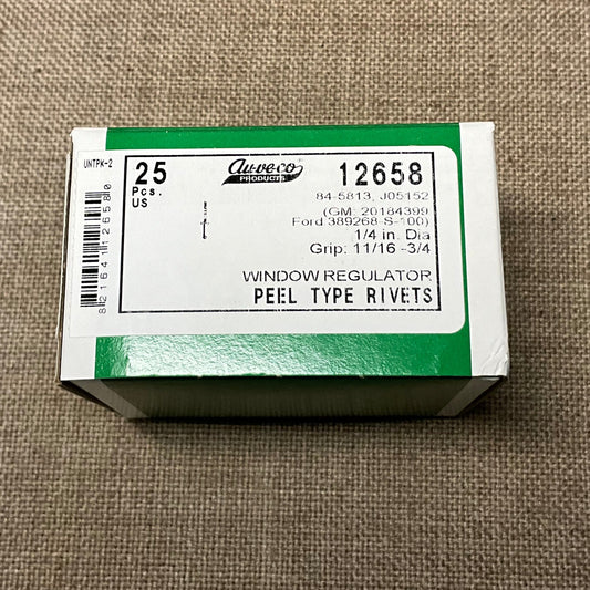 25 Window Regulator Peel Type Rivets Auveco 12658 GM-12338153 Ford-389268-S100