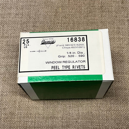 25 Window Regulator Peel Type Rivets Auveco 16838 & 11621 Ford : 385323-S100