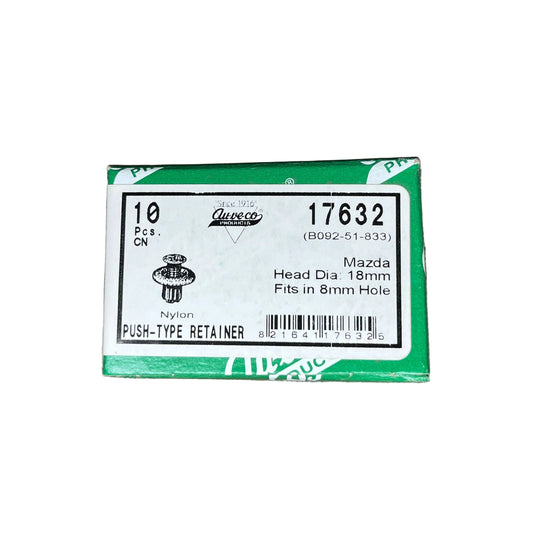 10 Push - Type Retainers Auveco 17632 Mazda: B092-51-833 Ford: MB-455-56143