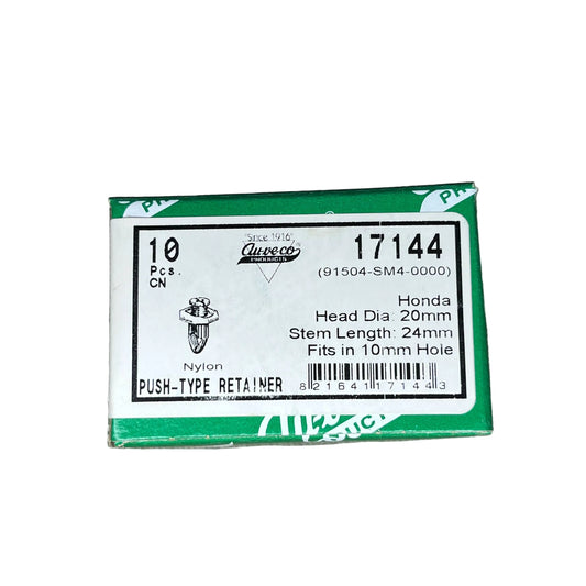 10 Push Type Retainer Auveco 17144 Honda Accord: 91504-SM4-0000 From 1990 On