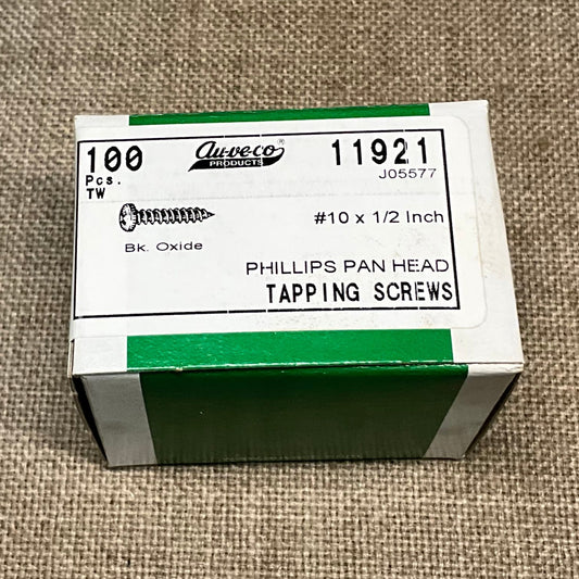 Auveco 11921 Phillips Pan Head Tapping Screws #10 X 1/2", Qty - 100