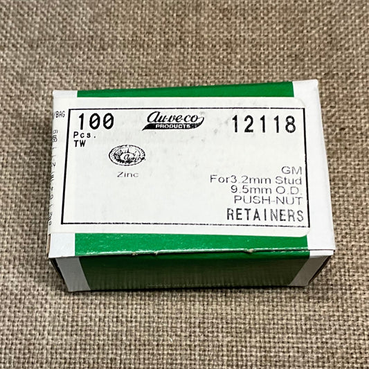 Auveco 12118 Push-On Retainer 3.2mm Stud 9.5mm O.D. -Zinc 100 pcs.