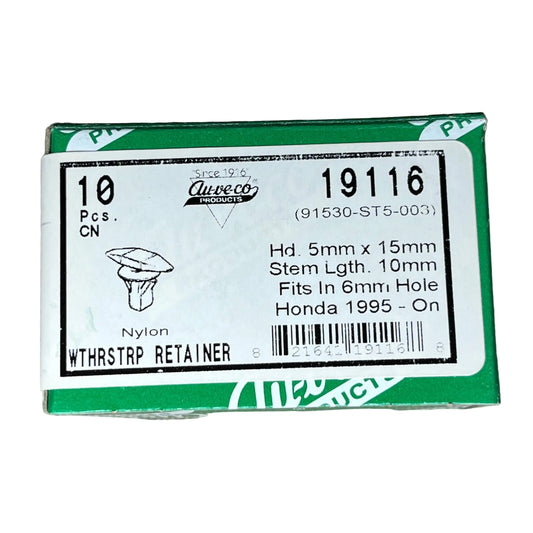 10 Weather Strip Retainer Auveco 19116 Honda Civic : 91530-ST5-003 ; 1995 - On