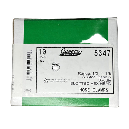 10-Auveco 5347 Slotted Hex Head Hose Clamps Range 1/2-1-1/8 Steel Band & Saddle