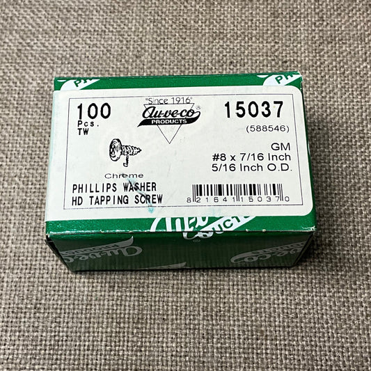 Auveco 15037 Stainless Steel Tapping Screw #8 x 7/16" Chrome Finish (Qty: 100)