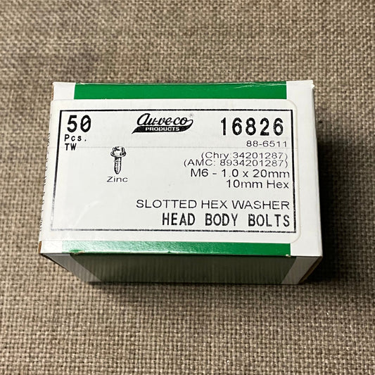 AUVECO 16826 SLOTTED HEX WASHER HEAD ZINC M6-1.0 X 20MM QTY 50