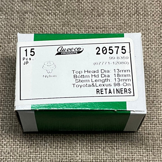 Auveco 20575 Retainers Toyotta Lexxus 98-On Bottom head dia: 18mm Yellow Nylon