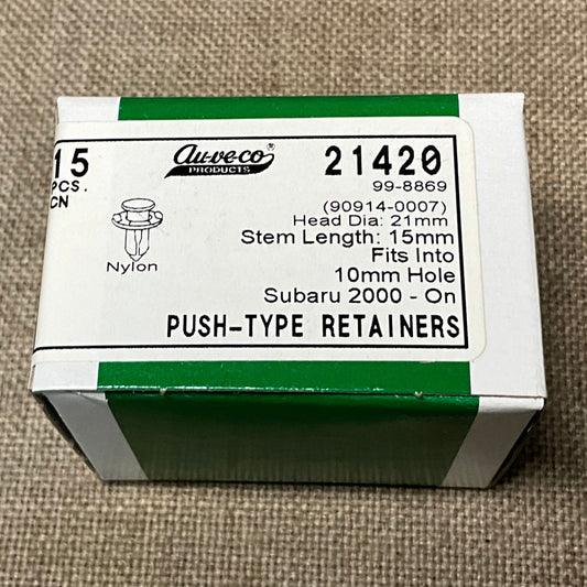 Auveco 21420, Push Pin Retainers, Subaru, Head Dia. 21mm, Stem Length 15 mm