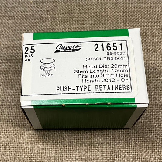 Auveco 21651 Push Type Retainer, 20mm Head, 8mm Hole, for Honda 91501-TRO-003