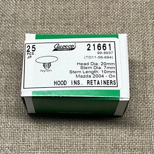 Auveco 21661 Hood Ins. Retainers Mazda 2004-On 25 PCs.